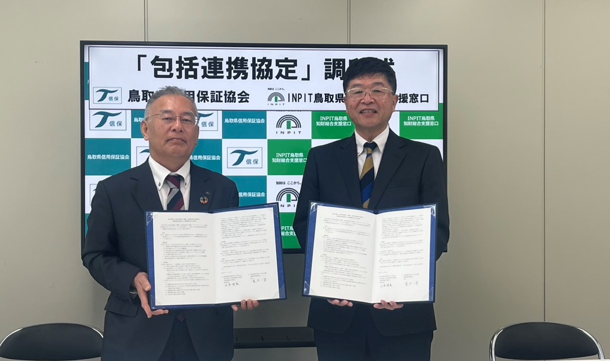 鳥取県信用保証協会は令和7年11月12日、INPIT鳥取県知財総合支援窓口と「包括連携に関する協定」を締結しました。